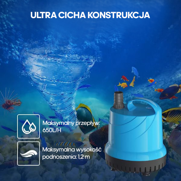 Unikalna konstrukcja pompy pomaga usuwać odchody ryb i zanieczyszczenia, utrzymując świeżą wodę w akwarium przy minimalnym wysiłku. 🚰