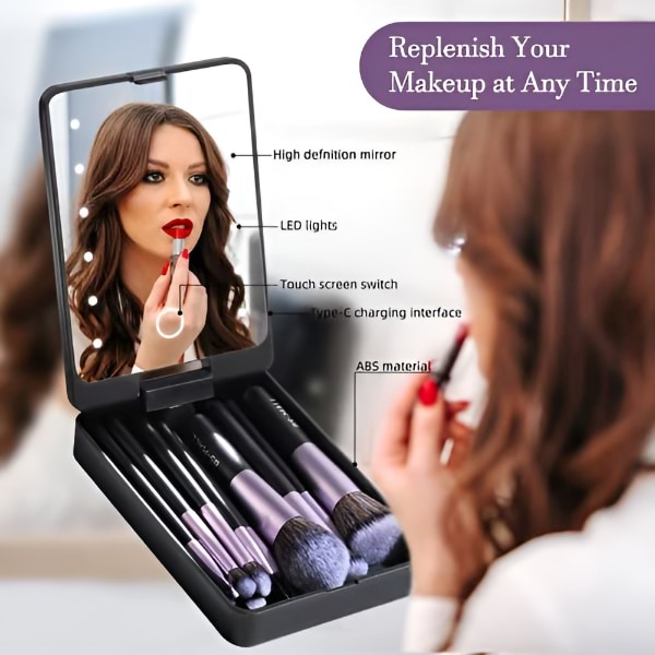 💡 Wbudowane lusterko LED w kompaktowej obudowie do poprawek w podróży.