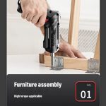 🧰 Kompletny zestaw 46 elementów, w zestawie walizka i bateria – śrubokręt, bity, wiertła, elastyczny wałek, nasadki, walizka narzędziowa i kabel do ładowania USB, wszystko gotowe do użycia od razu po wyjęciu z pudełka