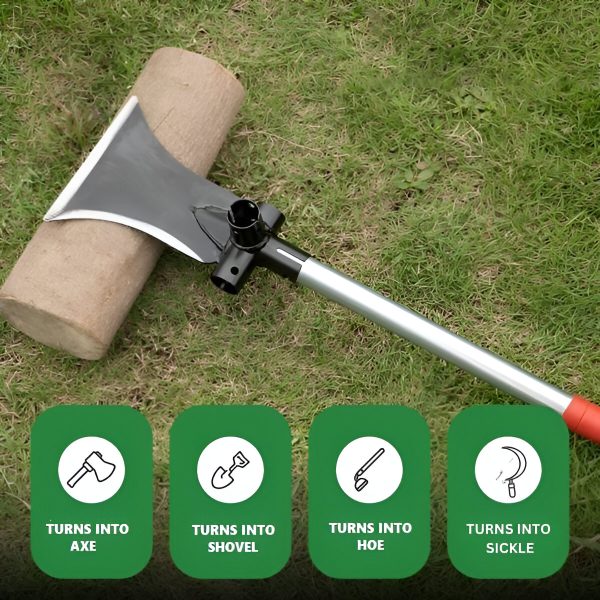 Przekształć VERSAX w siekierę, motykę, sierp lub łopatę z regulowaną pozycją uchwytu, idealną do każdego wyzwania w ogrodzie lub na świeżym powietrzu.